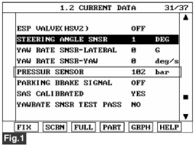 ABS/ESC - C1237 Primary Pressure Sensor-Signal - Monitor Scantool Data