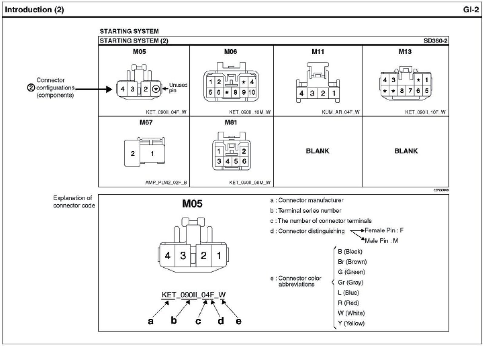 - It shows the front of the connector on the harness side when not to the harness connector. The terminal number on each connector can be obtained by following the pattern used in (5) connector view and numbering order. Unused terminals are marked with an asterisk (*).