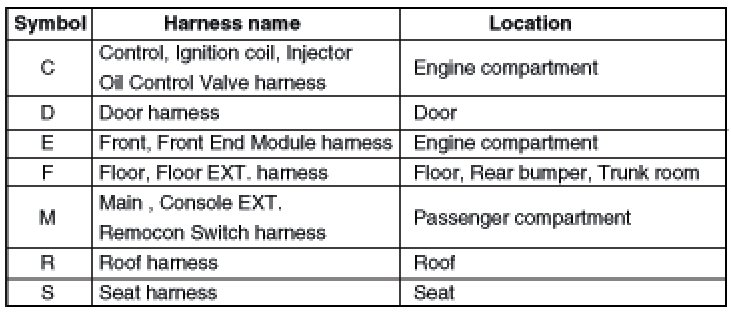 * It depends on vehicles, it is necessary to check the harness name symbol on the harness layouts for detailed symbol.
