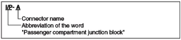 A junction block identification symbol consists of a wiring harness location classification symbol corresponding to a wiring harness location and number corresponding to the connector in the junction block.