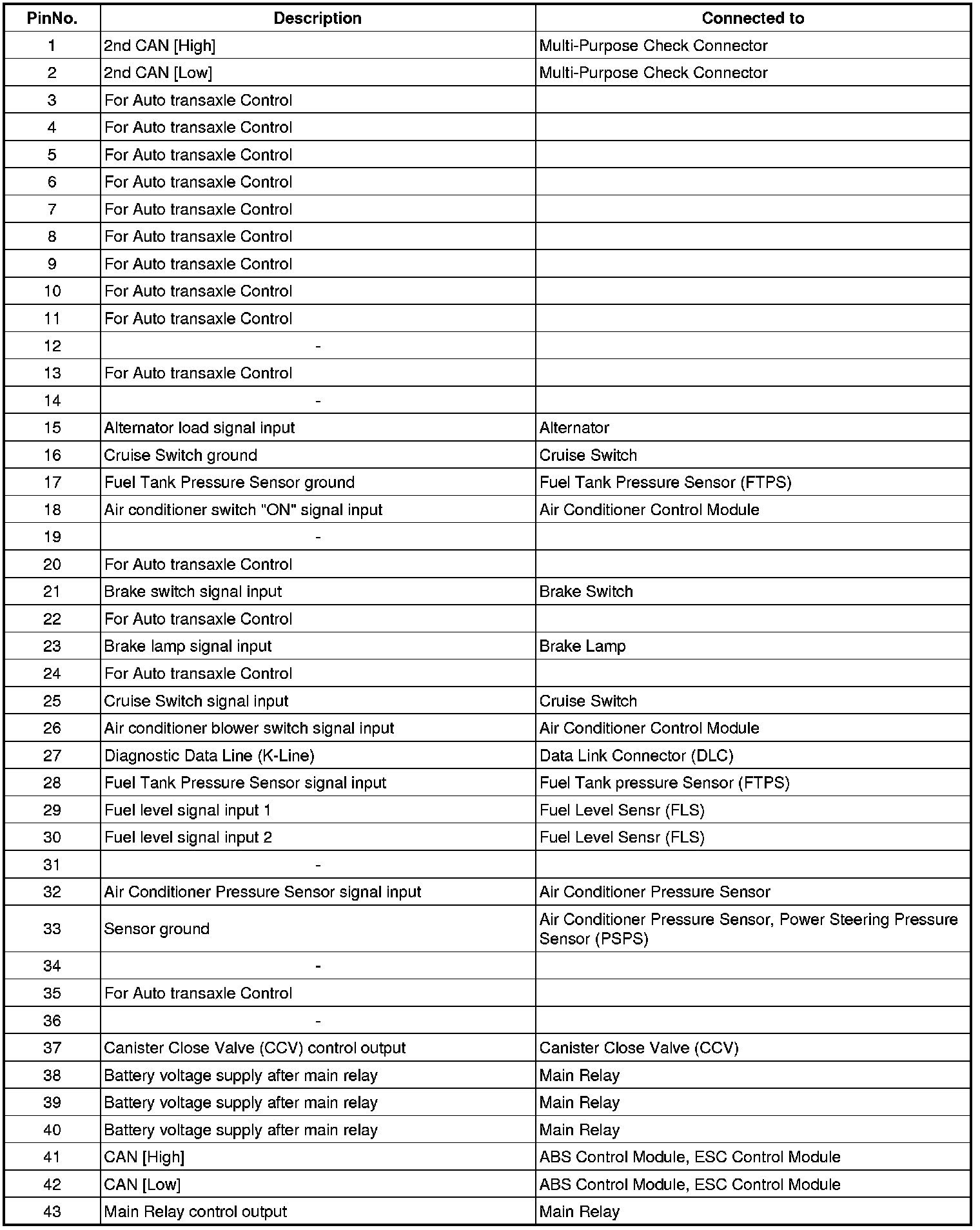3. PCM Terminal Input/output Signal