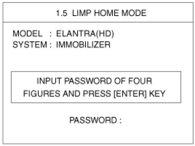 If the PCM(ECM) detects the fault of the SMARTRA or transponder, the PCM(ECM) will allow limp home function of the immobilizer. Limp home is only possible if the user password (4 digits) has been given to the PCM(ECM) before. This password can be selected by the vehicle owner and is programmed at the service station.