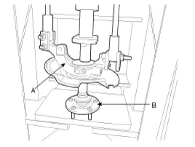 (3) Remove the hub assembly (B) from the knuckle assembly (A) by using press.