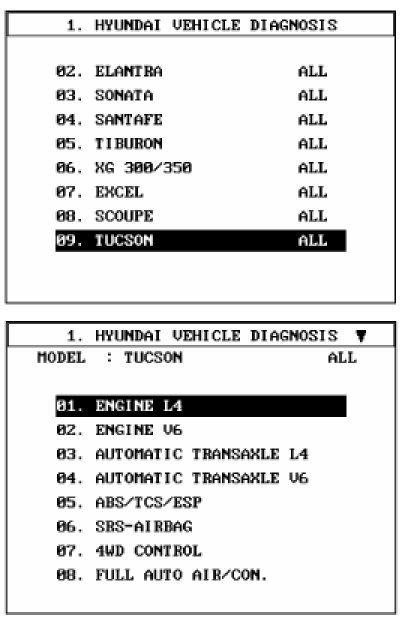 1. Select "Vehicle" and "Engine" (For example, TUCSON 2.0L L4).