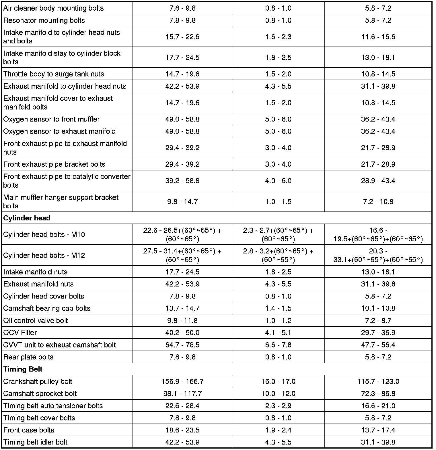 Tightening Torques