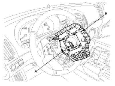 11. Connect the connector (A) to air bag module and then install the airbag module (B) to steering wheel.