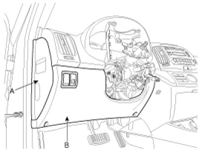10. Remove the lower side panel (A) and crash pad (B).