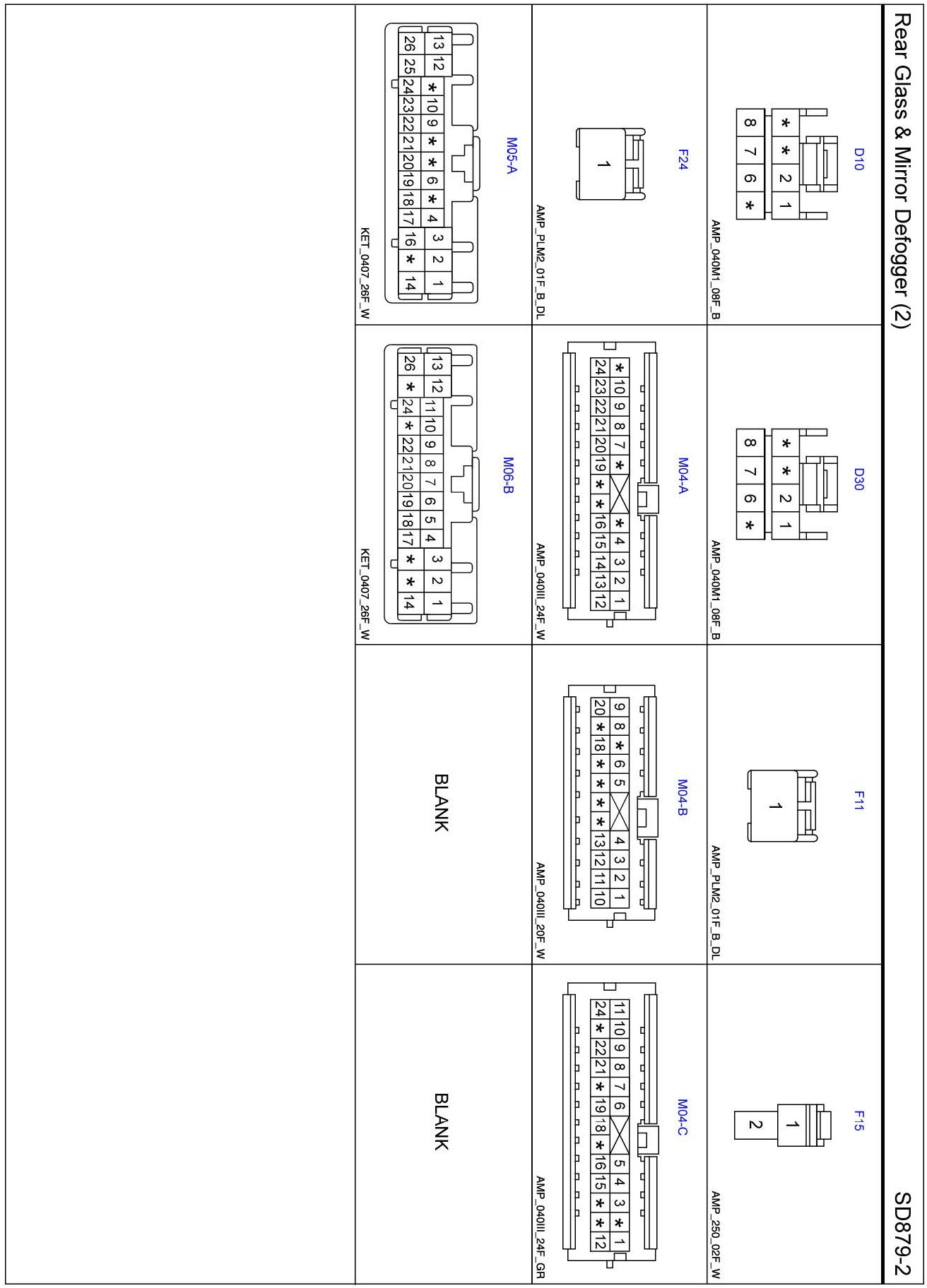 Rear Glass & Mirror Defogger (2) Connector Pin Outs: