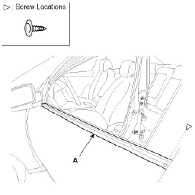 Loosen the mounting screw, then remove the door belt weatherstrip (A).