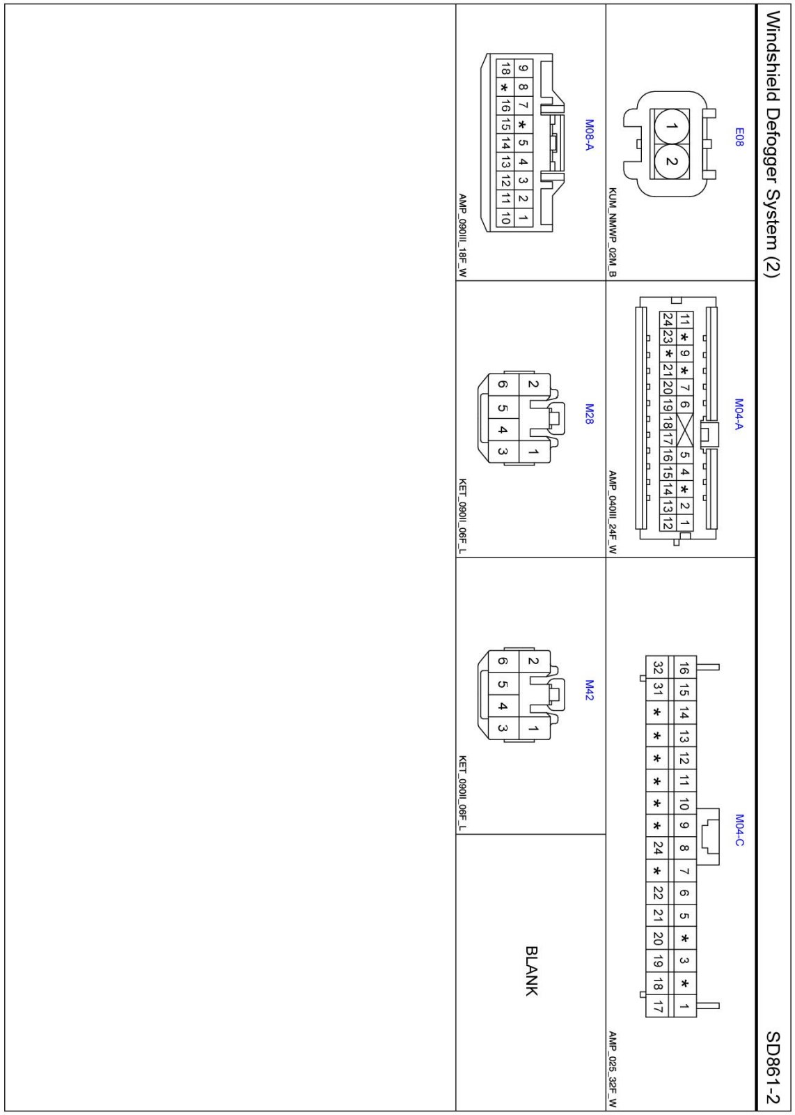 Windshield Defogger System (2) Connector Pin Outs:
