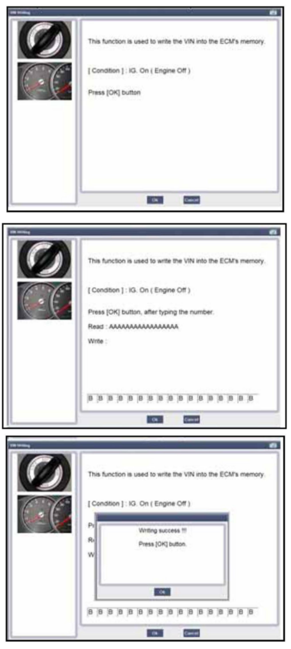 VIN Writing: Write the Vehicle's ID number into the ECM memory.