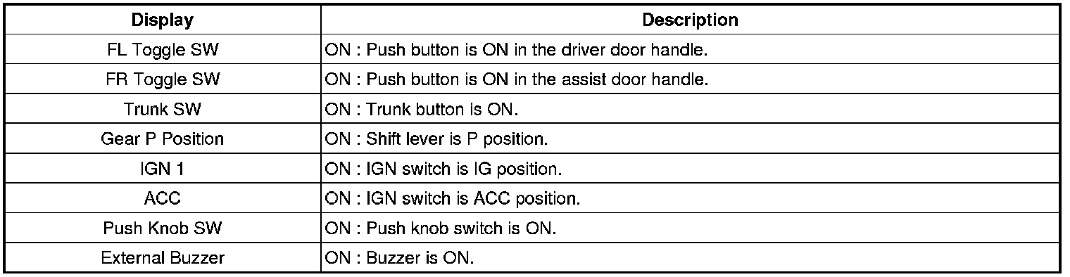 1. SMART KEY unit Input problem : switch diagnosis