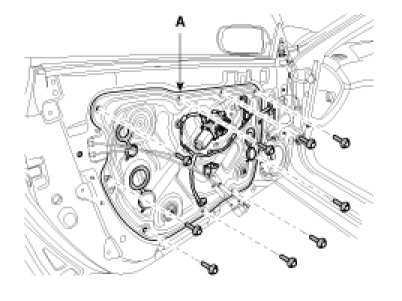 2. Loosen the door module mounting bolts, remove the door module (A).