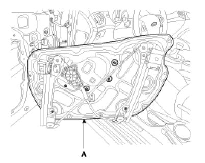 4. Disconnect the door module wiring harness, remove the module assembly (A).