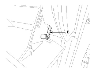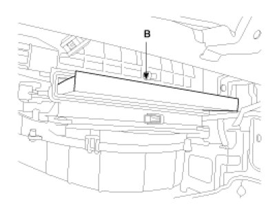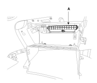 1. Open the glove box (A). Lower the glove box down completely by removing the glove box damper (B) to the glove box.