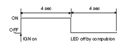 After ignition on, telltale lamp will turn on for 4 seconds and turn off for 4 seconds during the initialization phase and be turned off afterward until receipt of first valid suppression message from OCS system.