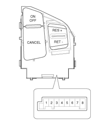 2. Measure resistance between terminals on the control switch when each function switch is ON (switch is depressed).