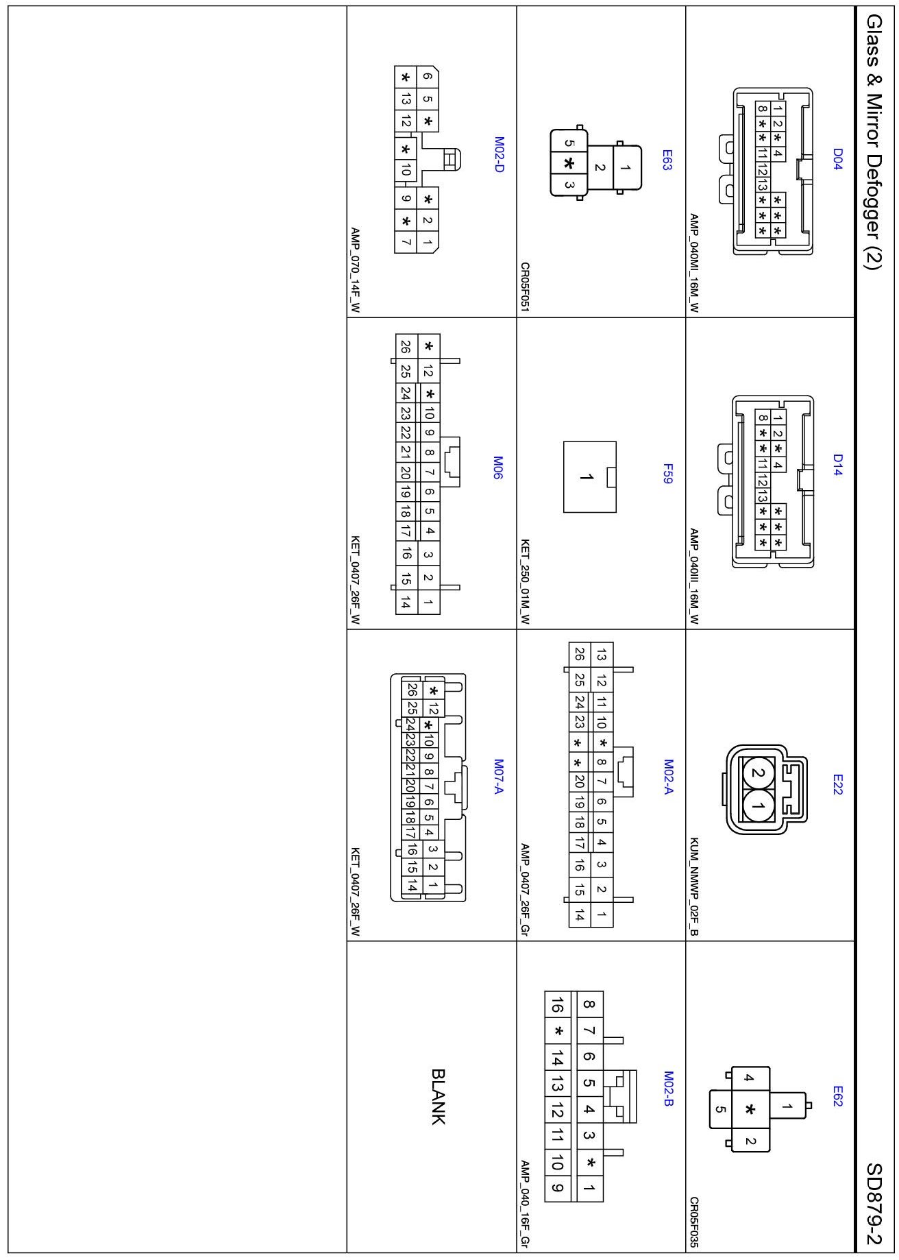 Glass & Mirror Defogger (2) Connector Pin Outs: