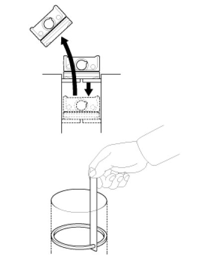 (3) Using a connecting rod aligner, measure the bent or torsion of the rod. If the measurement is near the specification, adjust the rod with a press. If the rod is bent or twisted excessily, replace it.