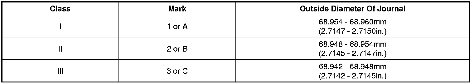If the proper clearance cannot be obtained by using the appropriate larger or smaller bearings, replace the crankshaft and start over.