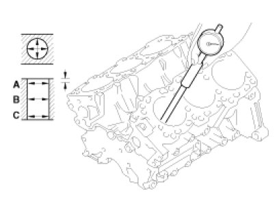 Using a cylinder bore gauge, measure the cylinder bore diameter at position in the thrust and axial directions.