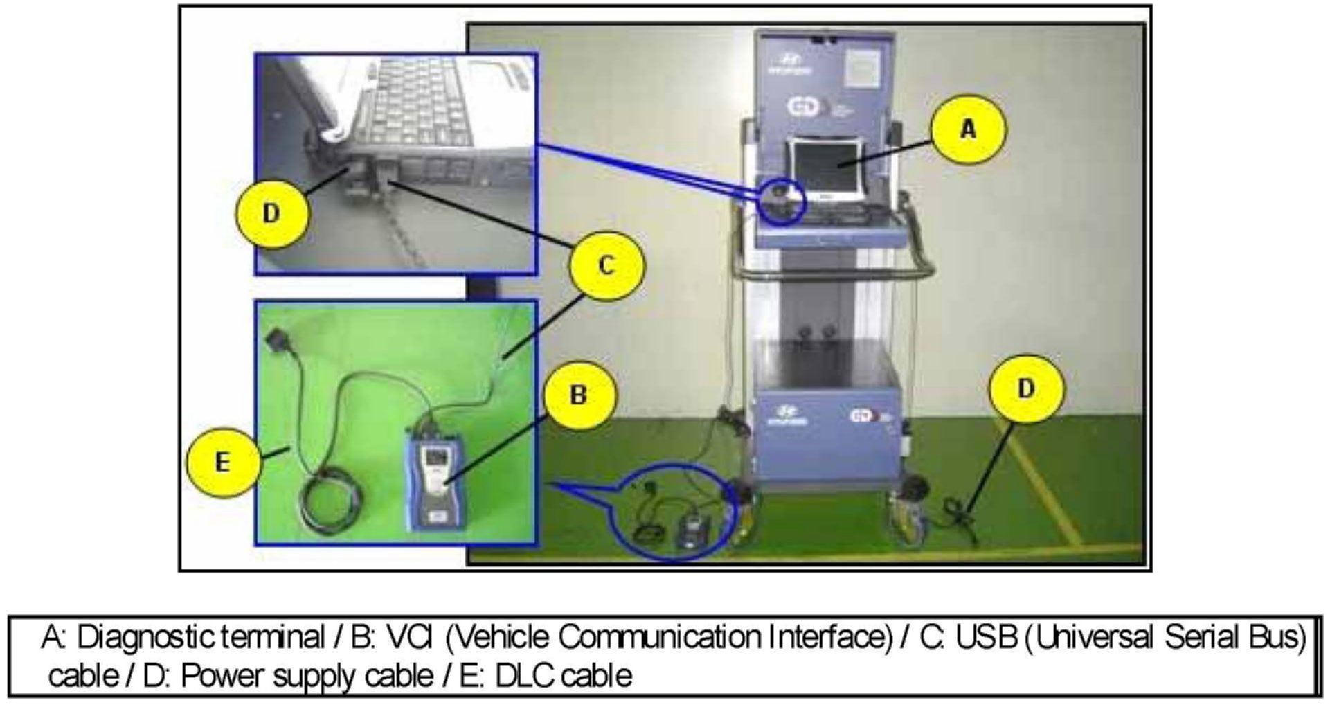 2. Connect the USB cable between the VCI and the diagnostic terminal.