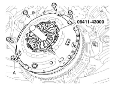 2. Install the clutch disc assembly to the flywheel using the special tool (09411-43000).