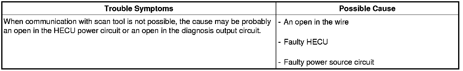 Communication With Scan-Tool Is Not Possible (Communication With ABS Only Is Not Possible)