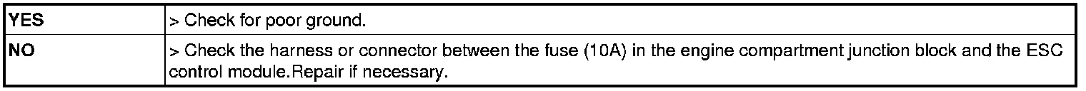 2. Turn the ignition switch ON, measure the voltage between terminal 8 of the ESC control module harness side connector and body ground.