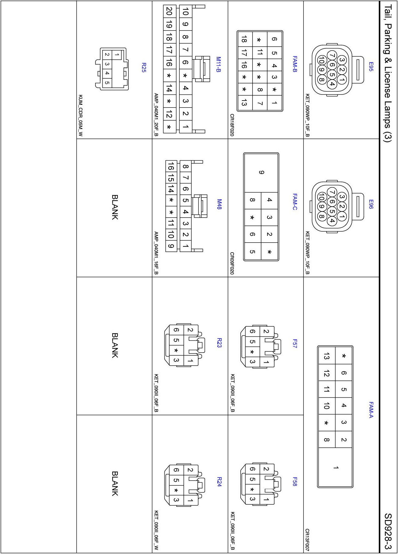 Tail, Parking & License Lamps (3) Connector Pin Outs: