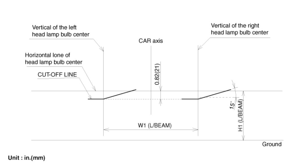 In case of HID option, the Cut-off line should be projected in the allowable range shown in the picture.