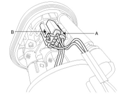 2. Disconnect the electric pump wiring connector (A) and the fuel sender connector (B).