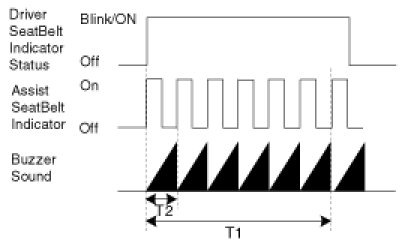 In case of Driver side 6sec Indicator, the cluster module operates it after receiving 'Driver Seat Belt Indicator Status' from the IPM. So if the IPM sends 'Driver Seat Belt Indicator Status = blinking' over 6sec then the IPM sounds buzzer warning one more time.