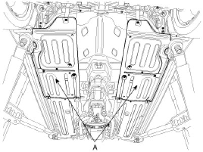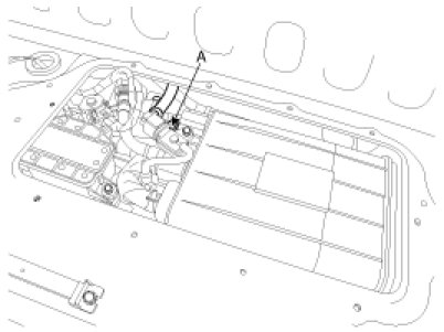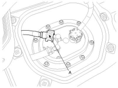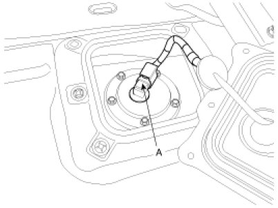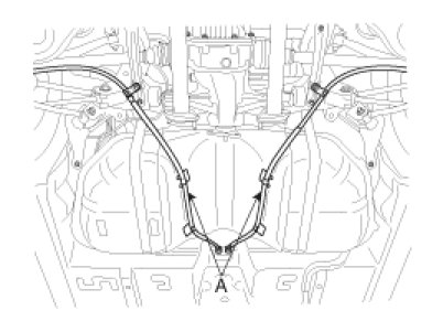 13. Detach the parking brake cable (A) from the fuel tank [Except Electric Parking Brake system].