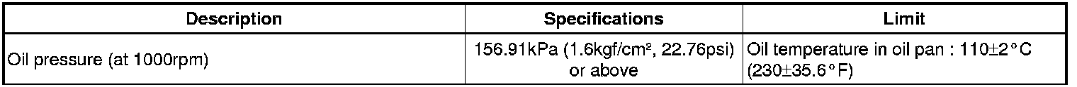 Engine Oil Pressure: Specifications