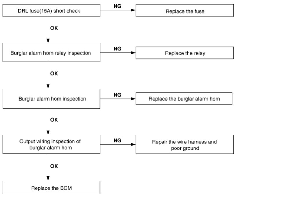 3. When door is opened inside the car, burglar horn does not work (If tailgate and hood is opened, alarm works)