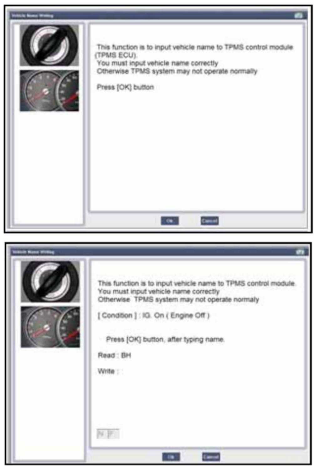 Vehicle Name Writing: Input the vehicle's name to the TPMS receiver.