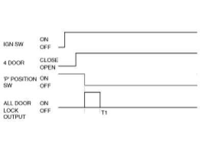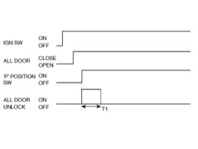 (1) When IGN Switch=ON & 4 DOOR CLOSE & ANY DOOR UNLOCK SW is LOCK, ALL DOOR LOCK signal is output for T1(one time) if 'P' POSITION Switch = ON -> OFF.