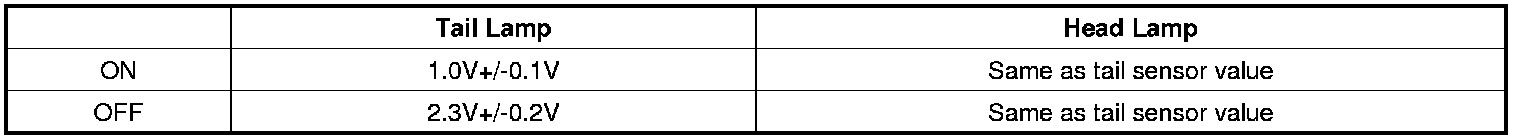 (12) The condition of head lamp ON/OFF is same as the one of tail lamp ON/OFF at auto light switch ON. Light ON value of the input sensor is based on the table.
