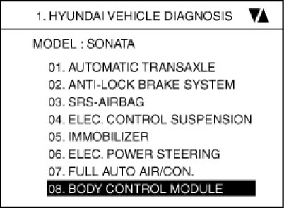 2. Select option "BODY CONTROL MODULE" and press ENTER.