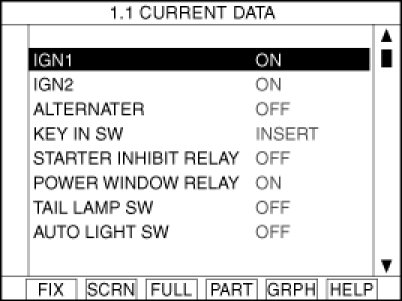 3. To consult the present input/out value of BCM, "02. INPUT/OUTPUT MONITORING". It provides information of BCM input/output conditions of power supply, turn signal/brake lamp, headlamp, door, locks, outside mirror, wiper, auto-light and transmitters etc.