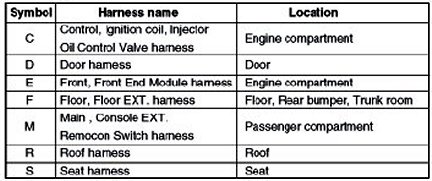 * It depends on vehicles, it is necessary to check the harness name symbol on the harness layouts for detailed symbol.