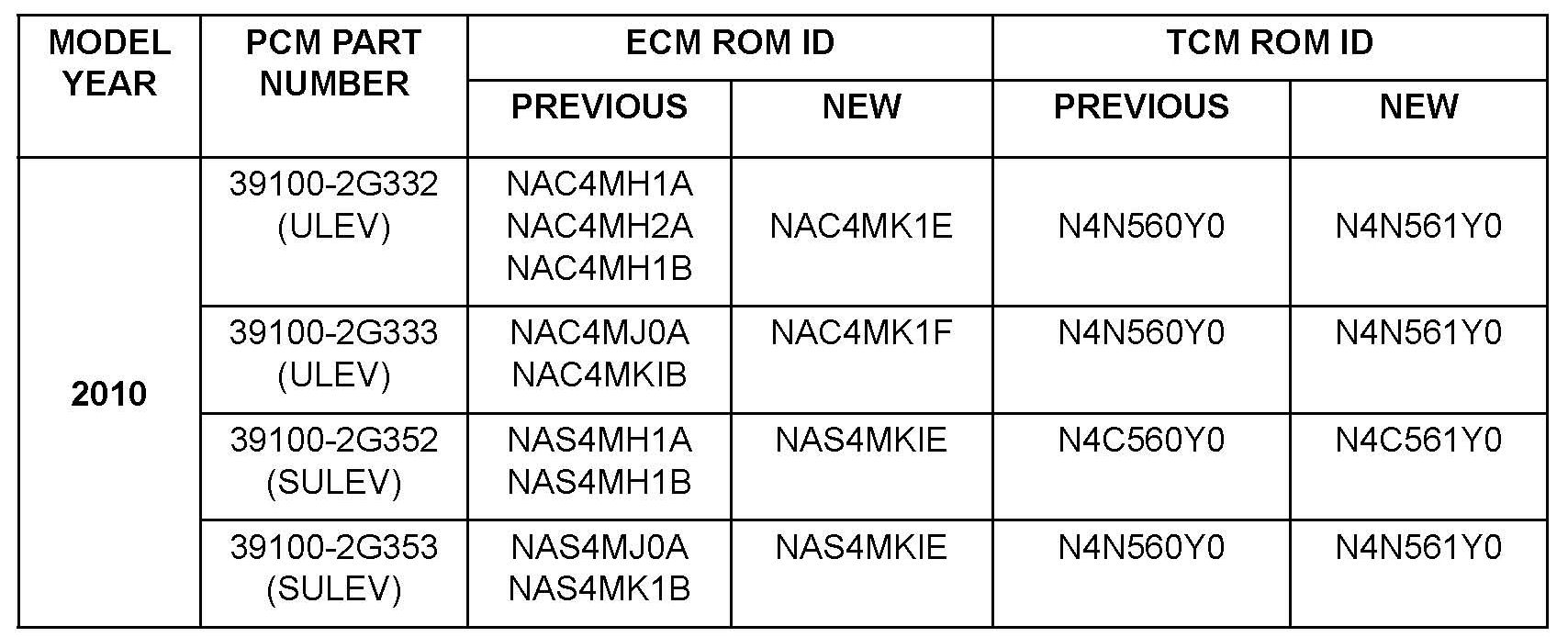 Model: 2009 and 2010 Sonata 2.4L (NFA) vehicles with automatic transaxles