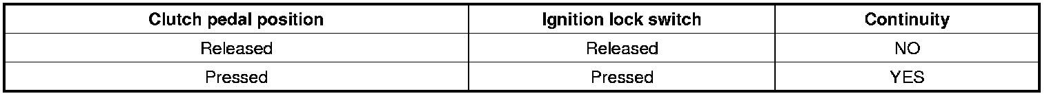 If there is difference between what tested and the table above, replace the ignition lock switch with a new one.