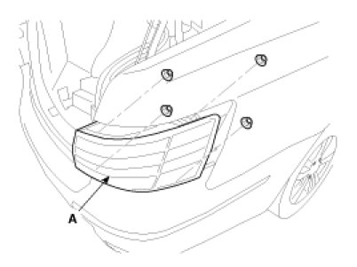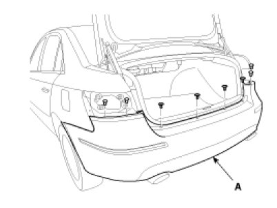 8. After loosening the mounting screws, remove the rear bumper (A).