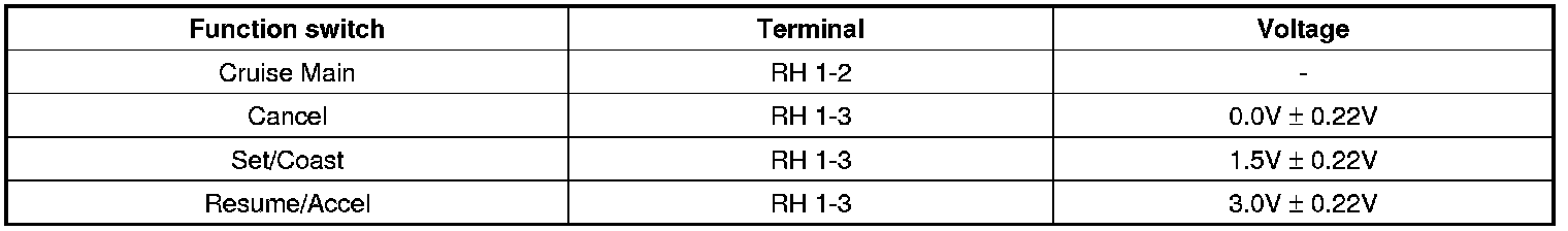 2. Measure voltage between terminals on the harness side connector when each function switch is ON (switch is depressed).