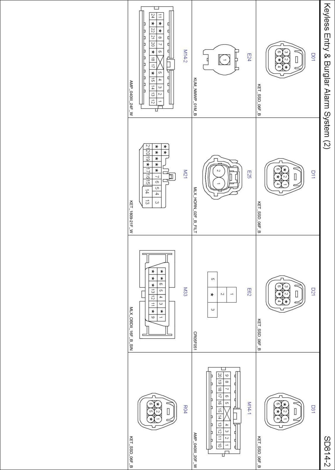 Keyless Entry & Burglar Alarm System (2) Connector Pin Outs: