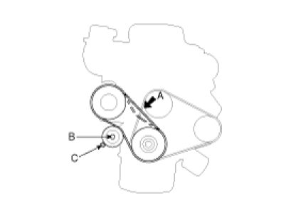 2. Turn the adjusting bolt (C) to obtain the proper belt tension, and then retighten the mounting bolt (B).