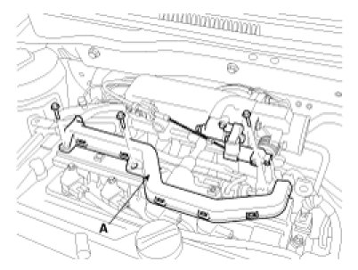(4) Remove the engine cover bracket(A).