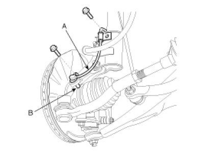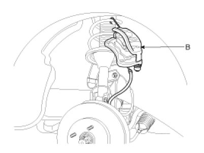 4. Remove the wheel speed sensor (A) from the knuckle (B).